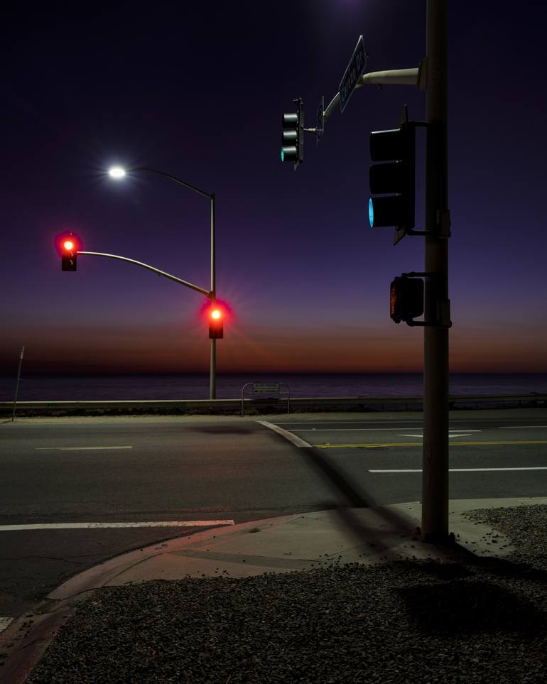 An intersection on Pacific Coast Highway 101 after dusk adds to the last remaining light of the day during this California sunset and creates a tranquil, surreal mood. From "California Nocturnal"