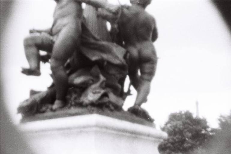 This analogue pinhole photo has been made in Paris and depicts one of the sculptures on Pont Alexandre III. In the background on the right the top of the Eiffel Tower is visible. This small artwork has been put in a white wooden frame and there is no glass before the work which enables a better view...