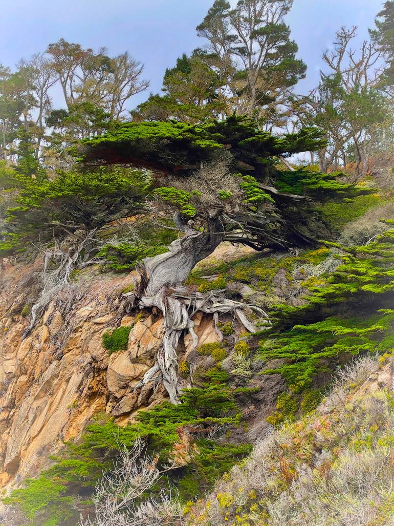 This magnificent landmark referred to as "Old Veteran Cypress" resides clinging to the cliffs of Point Lobos,just south of Carmel-by-the-Sea, California, United States, and at the north end of the Big Sur coast of the Pacific Ocean. Point Lobos features a number of hiking trails, many alongside the ...