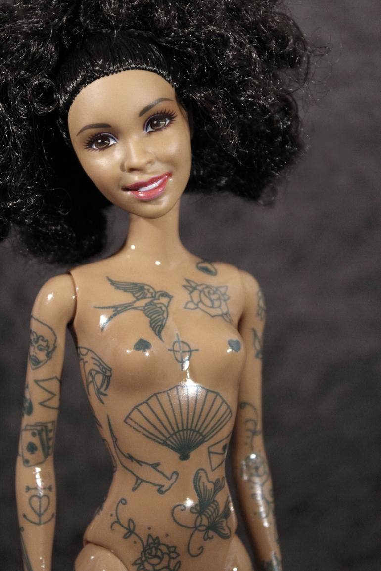 Porcelain Blue Monotone Barbie "Foxy Fey". These are prints only, but I'm selling the doll itself too, click on my collection and you'll see my Tattooed Barbie collections.
