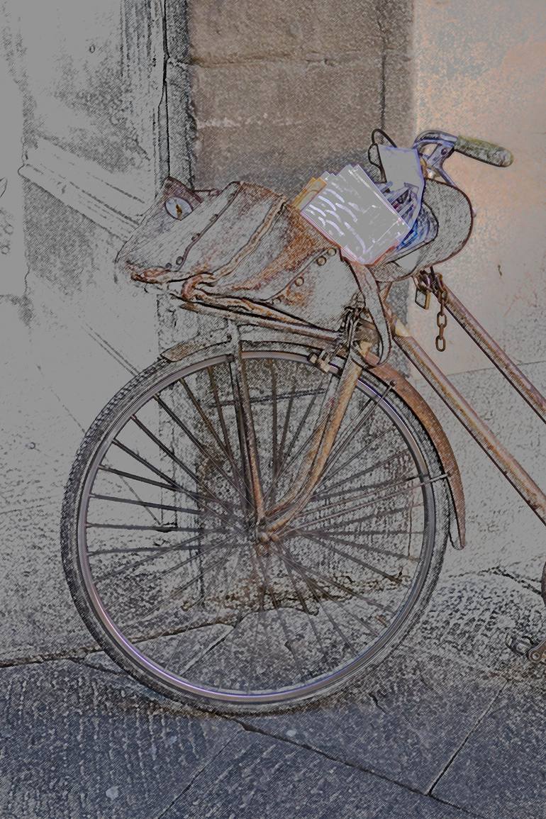 A postlady's bike in Lucca Italy an ancient walled town with a postlady that rides a gold bike of historic nature.