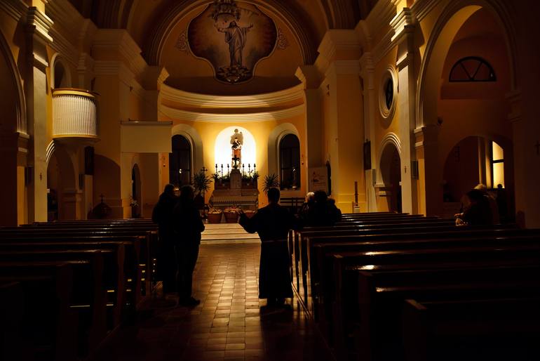 In the evening, in a Franciscan church in Transylvania preparing for the evening prayer. Ultra giclee print ultra-chrome pigment on Epson Ultrasmooth Fine Art paper, coated with double adhesive foil with neutral PH For other sizes please enquire (through Saatchi Art support) and it can be made avai...