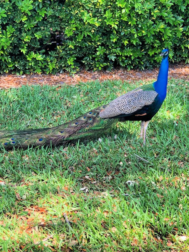 I was house hunting in Florida, and we were in the area known as Boynton Beach. We got out of the car to look at a house and were immediately surrounded by peacocks! I'd never even Known they lived here in the USA - Wildly!! I tried to pet it, but it tried to snip at my finger! LOL!