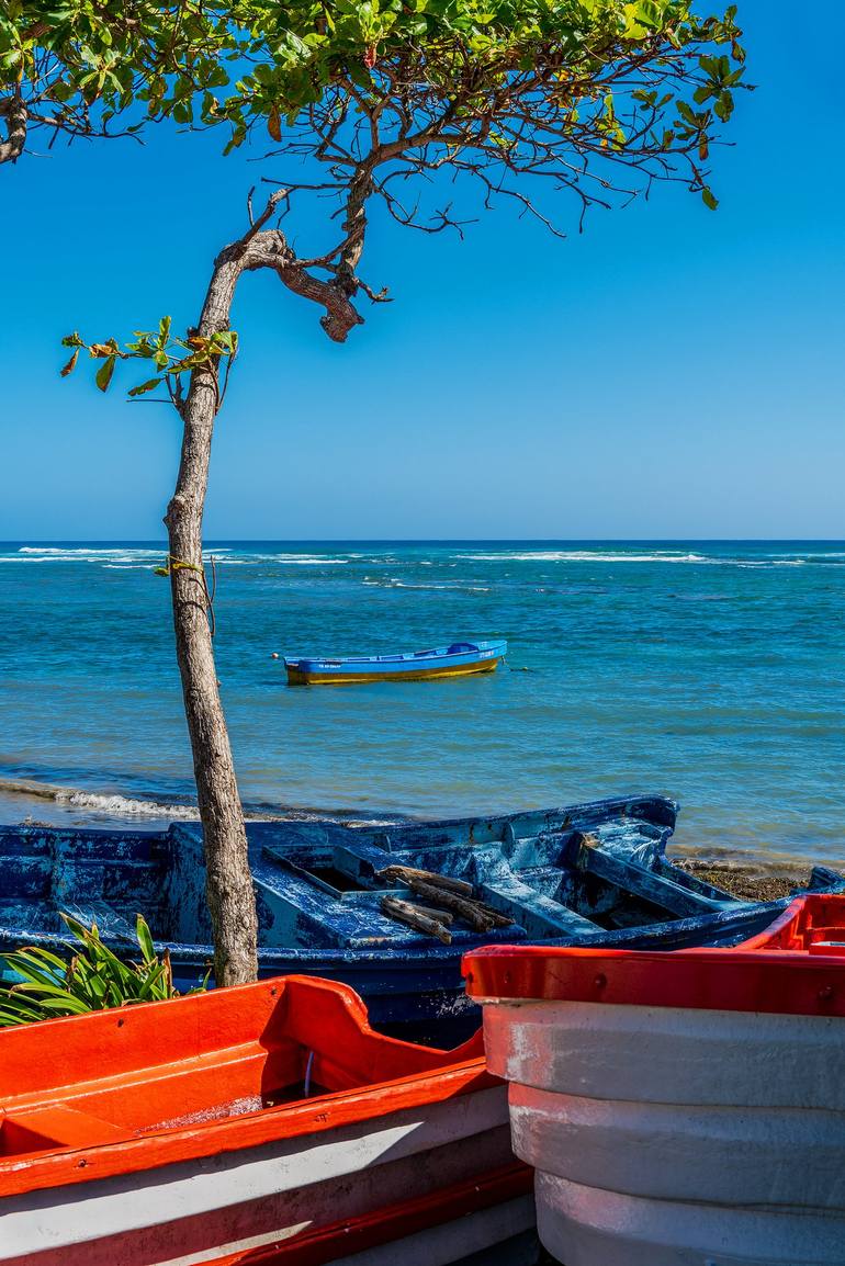 Local fishing boats along the coast. San Felipe de Puerto Plata is the capital of the Puerto Plata province on the Dominican Republic’s Atlantic north coast. Location: Puerto Plata Dominican Republic Photo taken with a Nikon Z7 46 mp high resolution camera. Printed by artist on an Epson 9900 printe...