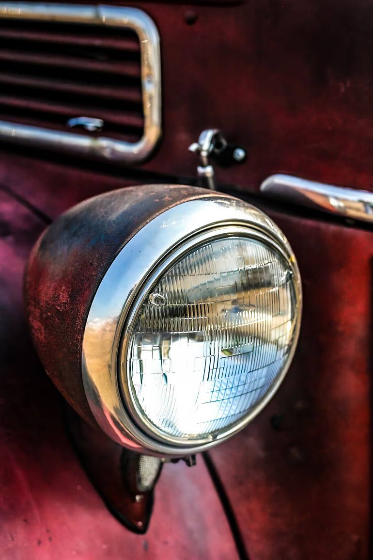 The patina of the old truck headlight and the red paint was very eye catching at the car show.