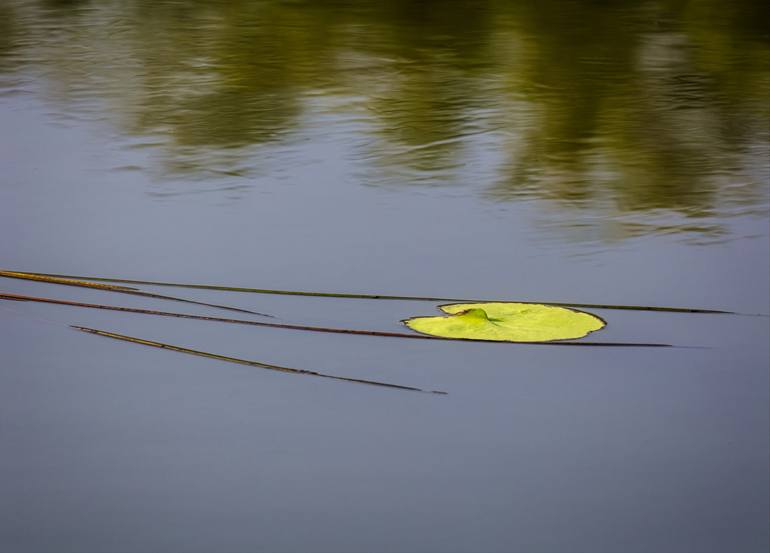 While traveling in the back waters of Kerala, I came across this view of the Lake near the shore. The lilies were growing all along the shoreline and the older sections were breaking off and floating away. The reeds and the single leaf drew my eye and so the image began its creation.