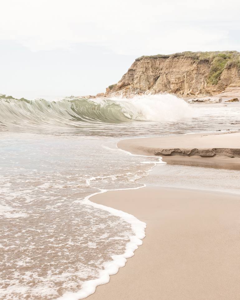 A seascape photograph featuring a Pacific ocean wave breaking along the central coast of California. Photographed near Refugio State beach near Santa Barbara. This image is printed using archival pigmented inks on Hahnemühle Photo Rag cotton paper, a museum quality paper. Presently offered as an o...