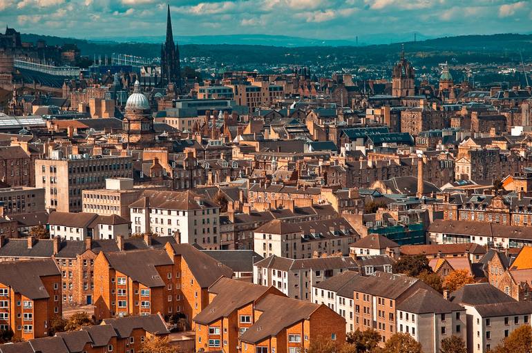 The overview of Edinburgh old town from Arthur's Seat hill. Steeped in Celtic and medieval history, Edinburgh is a cultural tapestry that is largely visually defined by hills, cathedrals, and the bold stone turrets of Edinburgh Castle. Ltd Edition of only 25 Fine Art Giclee prints signed, titled an...