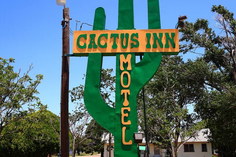 Unique neon sign at the Cactus Inn Motel in McLean, Texas. Route 66 is still there, for those who choose to find it.