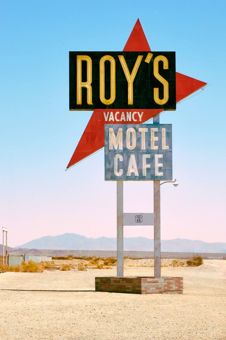 The famous Roy's Motel sign on the old Route 66. From the series "Coast To Coast". Comes signed, dated, numbered and framed.