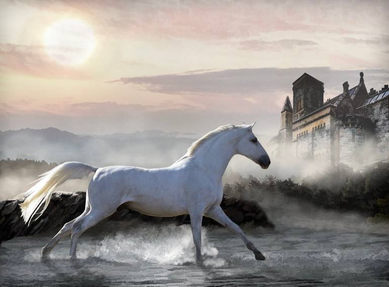 Eddie is a Dutch warmblood. HE is a high level dressage star. A Beautiful mover and a pretty boy at that! This is a composite digital painting. The original is a loose canvas.