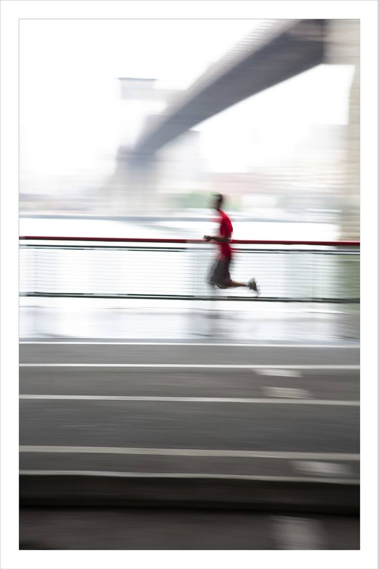Early morning runner near Brooklyn Bridge. "C-type" print with slight white border around. Singed by artist letter of authenticity included.