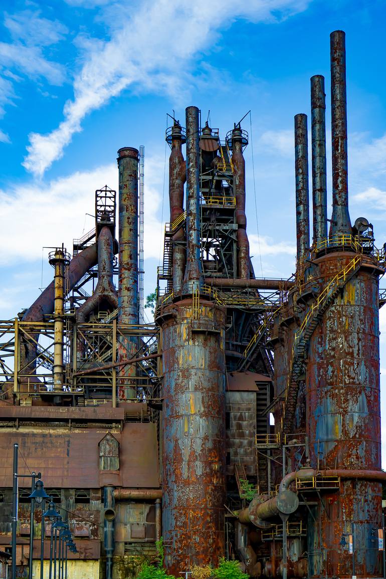 A once vibrant economic behemoth now silent... Metric tons of steel coursed through it's veins, helping to building a nation. The George Washington bridge, Golden Gate bridge the Verrazano bridge to name a few of the project that used it's steel...Now just a stark reminder of it's former glory!
