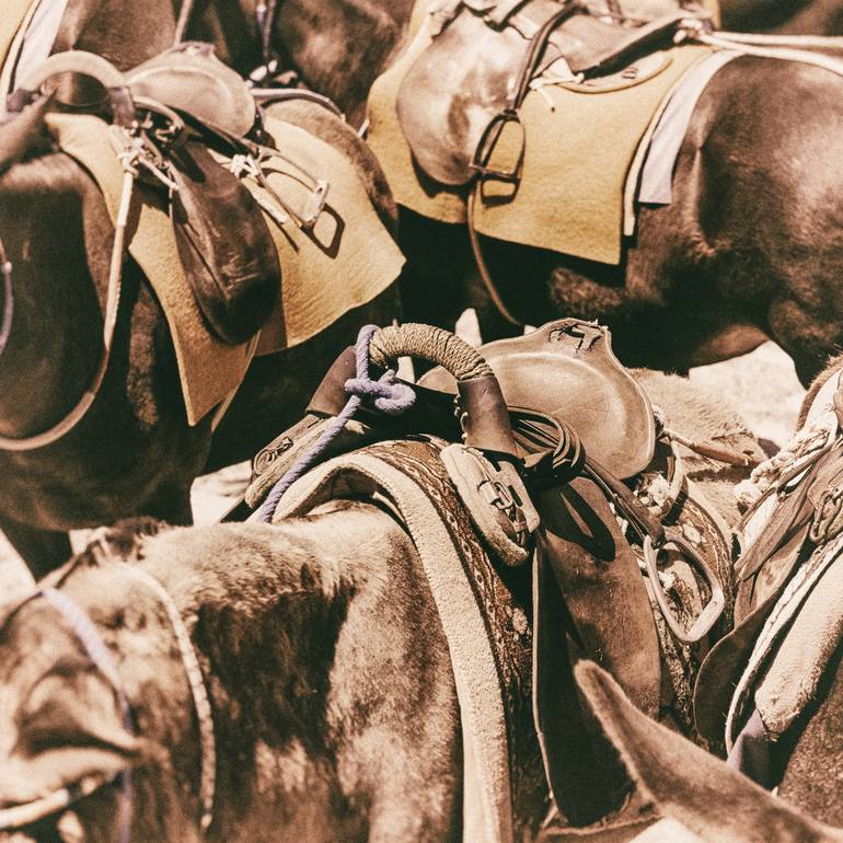Horses waiting for their riders. On the Island of Satorini in Greek the locals run a busines to take the turists up on the stairs with their horses. While they waiting for theire turn by looking at them you can sense the stoped time.. Original Limited Edition 2/16 printed on Hahnemühle Paper with ...
