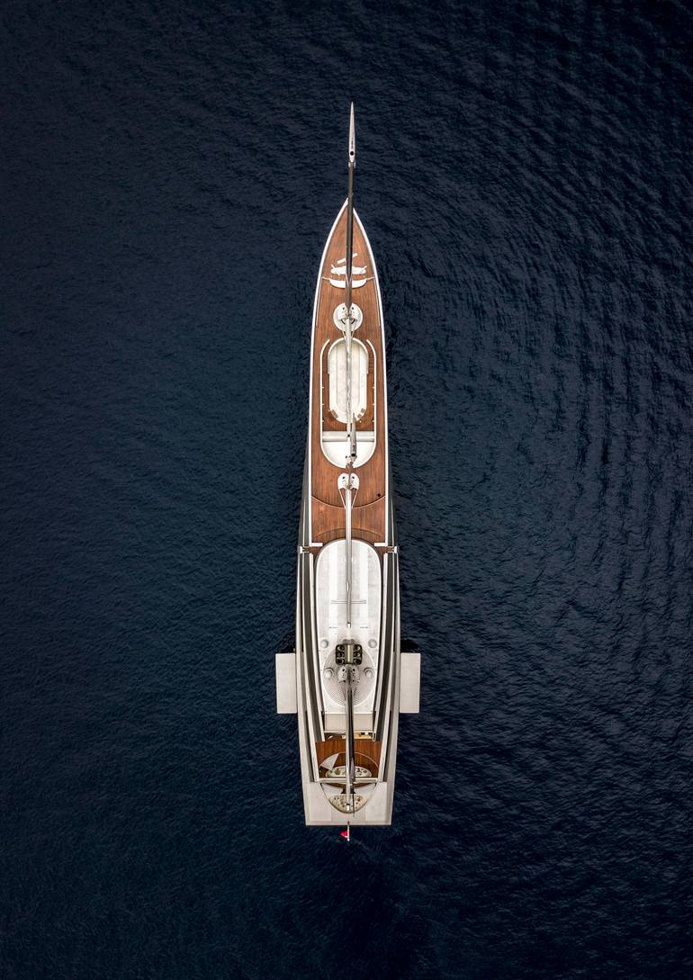 Aerial photography of sailing yacht A in Antibes, France. Built by Nobiskrug.