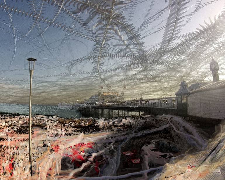 5 minute exposure of seagulls hovering over Brighton Pier looking for opportunities to steal chips from the people below, with the trails of people on a crowded summer beach. You have to be wary when enjoying a fresh bag of chips when walking along Brighton Pier. The locals know to hold food close...