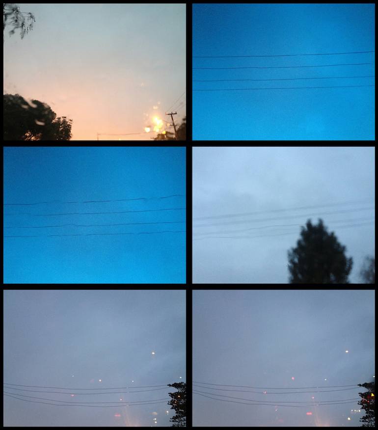 A sestet is a six-line poem. Here, 6 photographs are akin to the literary devices of repetition, alliteration, rhyme or metaphor to emphasize a moment, reflect on time, express a feeling or state mind. Often taken from the inside of a car, these grids are not rigid and restrained, but dreamy, cinema...