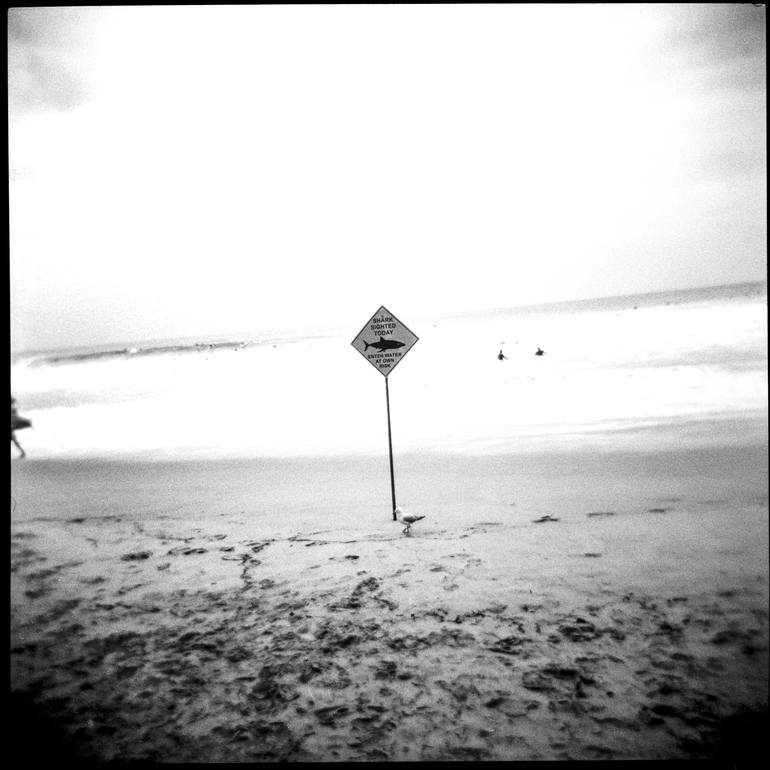 Shark attack warning, Manly Beach. Printed on archival cotton rag.
