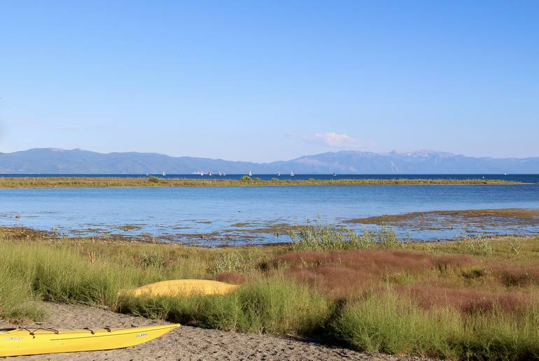 Along the beautiful, peaceful coast of Lake Tahoe, low water levels in summer reveal colorful foliage at the shoreline. Limited Editions are signed and numbered by the artist. All photos are printed on high-quality, acid-free premium photo paper. Also available 24 W x 16 H: $290, including shipp...