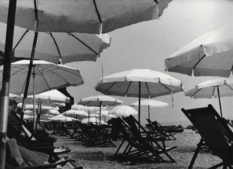 Sestri Levante beach at lunchtime... in those days no one was swimming for at least an hour after the pasta e fagioli lunch....it was siesta time on the Italian riviera, the first summer I had a real camera, a Leicaflex. Always Tri-x developed in D-76, and the print is on Portriga Rapid paper, I onl...