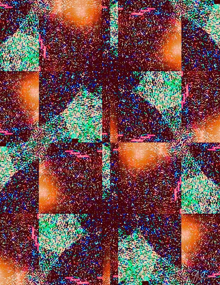 Signal & Noise II, the dynamics of light and sound, assembled from screen glitch photos.