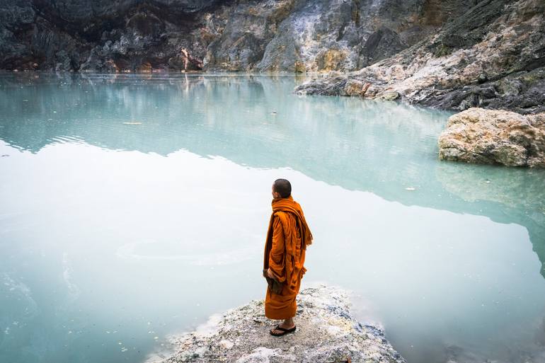 My trip as a backpacker in Indonesia was transformative.... In this case I was in the crater of a volcano in Java, the subject is a Buddhist monk with whom I could not share much dialogue because we both spoke different languages. I asked permission to take his picture and he accepted with a smile. ...