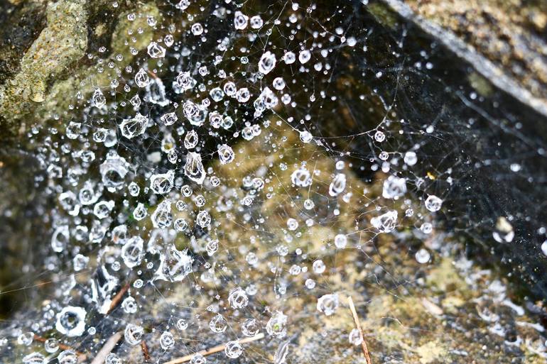 Snapped on a cold, dewy morning. Spiderwebs covered in dew...