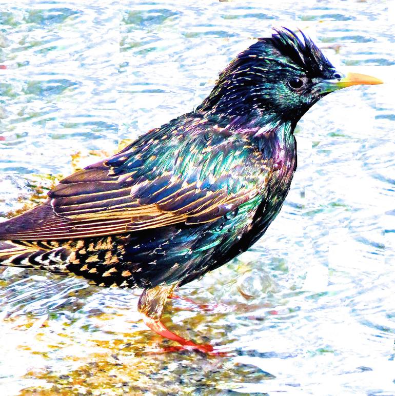 Starling 9a2 is a portrait of a starling in a fountain in NYC.