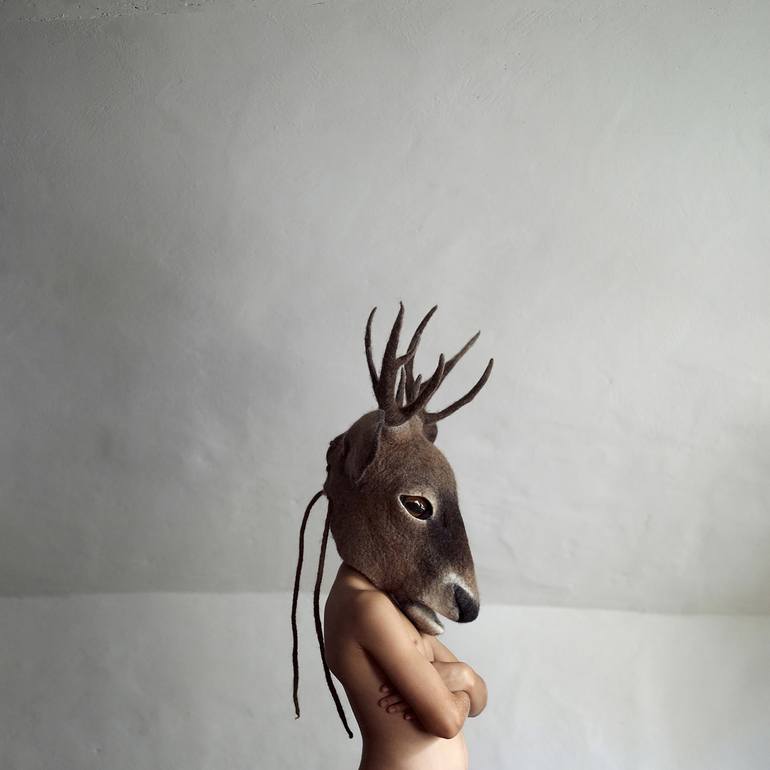 From the collection Storms at Sea, a series of photographs taken in collaboration with a felt artist in Somerset.Styled by Bella West - a slight inversion of blood sports giving the animals the upper hand. The masks come to life when worn by humans and this image is part of a collection from 3 separ...