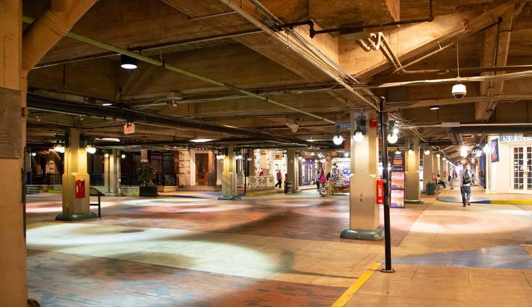 Shoppers and Tourists on the Streets of Underground Atlanta. Underground Atlanta isn't the funky strip of vintage bars that it once was, but it's still an interesting place to watch people and grab some interesting images.