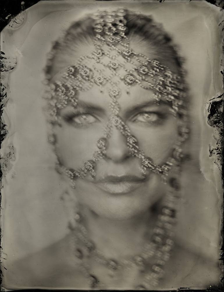 This work is one of a series of mystical, meditative portraits and artistic images of gorgeous . MUA & Hair: This image is made using 19th century authentic wet plate collodion technology with 8x10 inches camera on blackened silver plates. Pure sculptural beauty of women frozen with long exposure...
