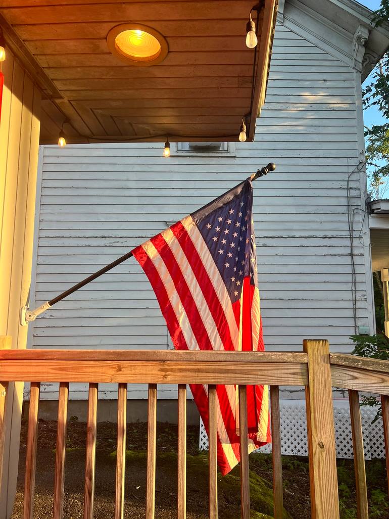A picture of the American flag outside of a rural ice cream parlor. The little sliver of blue sky next to the building on the right really gives it a sense of space that is unique to summer. A quiet, peaceful moment that sums up a beautiful, slow, American summer.