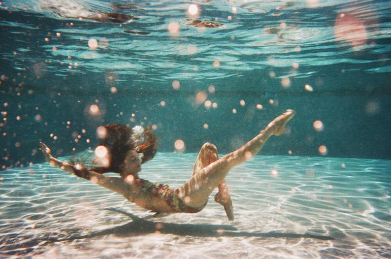 I wanted to create a work with a long time friend who is a great dancer underwater. The beauty of the light and the colors with her figure and with the added pointe shoes makes a tranquil arresting image.