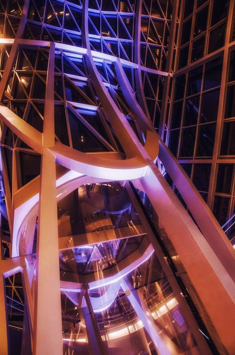 Swinging into the Dusk - The glass crystal of the foyer in the new museum with its deconstructivistic architecture blends the swinging structure of the building and its facade together with the properties from transparencies and reflections combining interior and outside activities and characteris...