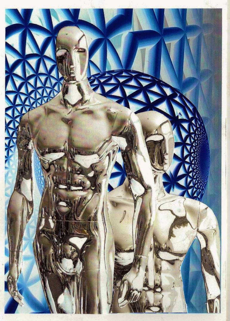 I am an Experimentalist. As youngsters, we are allowed to create fantasy worlds, filled with imaginary friends. Then we are told to color within the lines. RIDICULOUS! There are two paths to greatness among human beings; accident and pioneering exploration. Neither of these involve painting within the lines. Both are forms of Experimentalism. Accident occurs when, by happenstance, a new ideas is formulated by a trained observer while viewing a random happening. Penicillin for example. pioneering is terribly expensive, because many pioneers are represented by the dried out bones on the desert. I am concerned about the future. Technology continues to advance at a speed with which humans cannot assimilate. I believe people are not able to adjust to the speed with which this is happening. Don't you hate trying to use 411 service or the robot "customer service lines"? My work is a combination of futurism, expressionism, nature, android technology and human body forms. This is known as NEO CONSTRUCTIVISM. I juxtapose natural realistic forms with strange mechanical forms. I take a broad range of powerful colors and arrange them in various unusual positions. My devotional is to beauty, but not in the conventional sense. That is Neo Constructivism. ALL ARTWORK IS SHIPPED IN A TUBE, READY TO MATT AND FRAME.