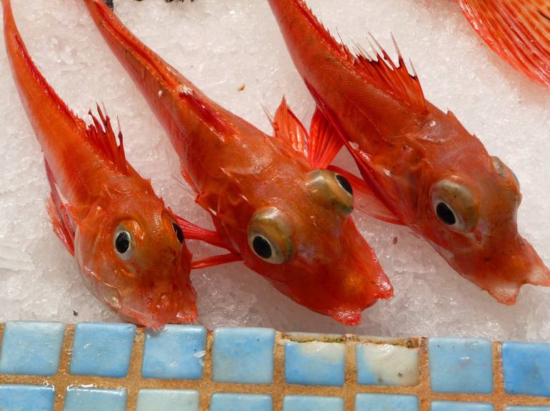 PHOTO OF FISH USED IN SOUPE DE POISSON AT A FARMERS MARKET IN THE SOUTH OF FRANCE. RATHER CUTE ARE THEY NOT?