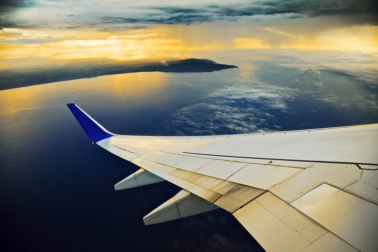 First printed: 2016 It is always a pleasure to takeoff from LAX, but at sunrise with a storm coming off the Pacific, it is pure enchantment. Autonomous groups of clouds have formed on different levels, and in the distance there is virga: rain that evaporates before it reaches the earth. The dark la...