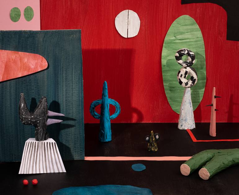 Born in 1991. Lives and works in Warsaw. He works with photography and drawing as well as installation. Mozolewski seeks to develop his own language of abstract expression, creating compositions full of details from the borderline of that which is known and that which is removed from our routine mindsets. His art is centred on form and colour, in which he seeks new, unfamiliar networks of connections coming from the subconscious. His inspiration stems from hypnagogia as well as visions induced. With the help of these works I try not to present a particular feature scene, but to balance on the border of the familiar and uncertain, creating a kind of theatre of light, shape and colour. The sculptural forms / puppets used for this purpose, made of styrodur, plasticine, plaster and other similar materials, immersed in an abstract form, are designed to build a specific, strange atmosphere of the scene, cooperate with the rest of the objects, creating a semi-abstract composition. Objects, as well as entire compositions, are created under the influence of the moment, without a specific plan, semi-consciously and quite automatically.