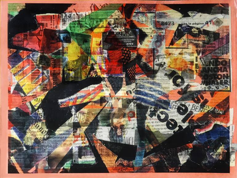 Assembling parts in paper collage inspired in actual newspapers and their lost against social media. Fake news, sells and graphics merge in caos of technology that runs too fast.