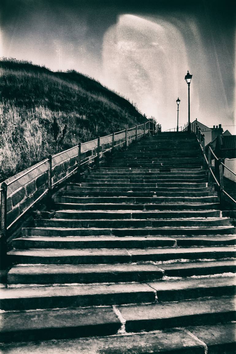 An atmospheric image taken in Whitby of the famous steps running up to The Abbey. Created in a grainy bygone desaturated style. The image is a limited edition unmounted authentic work produced to the Giclée established fine art standard of high quality digital printing. Printed on Fine Art Museum 3...
