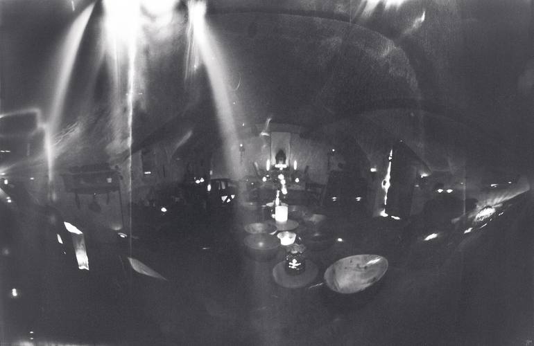 an old, caved room in a farmershouse. build in 14 century. the lighting of the camera obscura photography is by candles. it took two days (many candles) of exposure time with the pinhole camera. there is a negative print and a positive print of this picture. since i used round camera, the complete c...