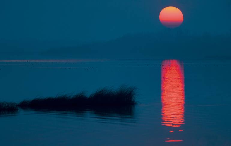 The setting of the orange ball; sunset. It is as though the Danube’s waters have stopped and the birds have lain down to rest. This is the evening near Labudovo Okno (Swan’s Shaft). It is on the edge of Deliblatska Sands, near the village of Dubovac.