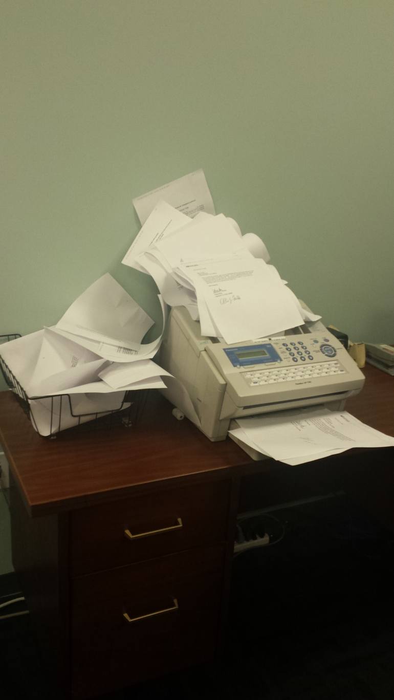 Did you see a fax for me? Have you received the fax yet? Here we have a fax overflow which I am sure we can relate to days at the office...but this is a bit extreme, maybe it happened over the weekend. There is an abundance of faxes, which one is yours?