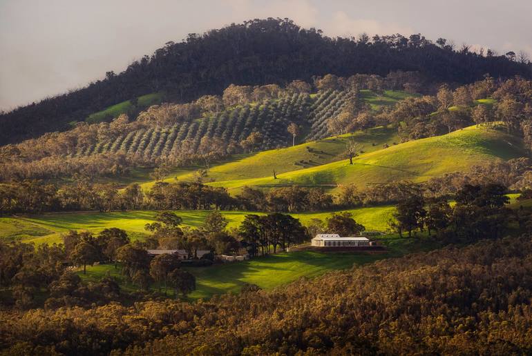 Looking north from a hill off fox creek road, just before sunset over the hills and far away, a flock of sheep lazily graze a hillside . I almost didn't get this image, it was terrible weather I hiked to the top of what felt like a mountain in pouring rain, no sun just clouds and rain, at the top I ...