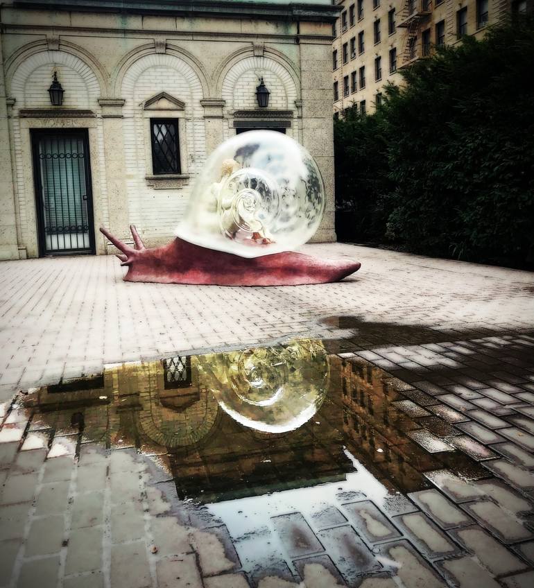 A sculpture of a glass snail at the corner of West 96th Street and Broadway in the Upper West Side, New York City Giclée print using pigment-based inks with archival substrates on fine art archival Hahnemuhle paper. This image, numbered and signed on the back by the artist.