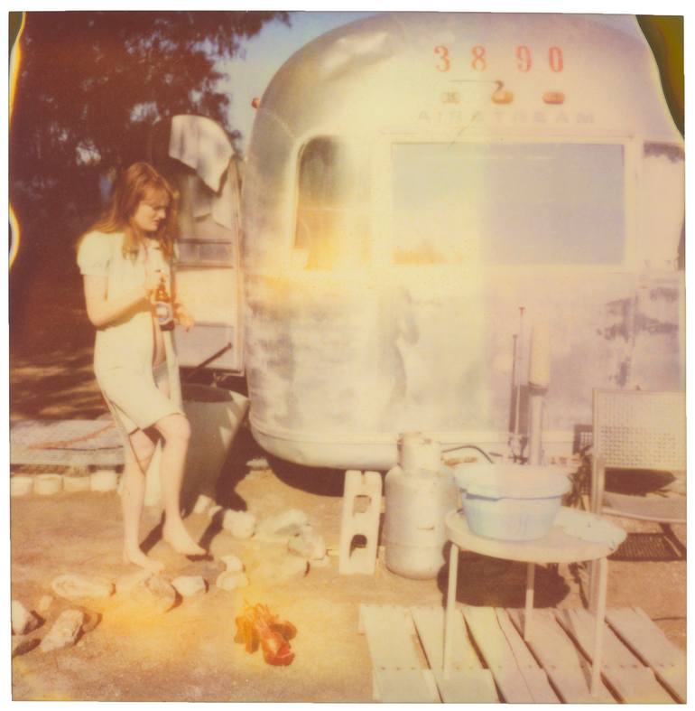 Stefanie Schneider lives and works in the High Desert of California. Stefanie Schneider's scintillating situations take place in the American West. Situated on the verge of an elusive super-reality, her photographic sequences provide the ambience for loosely woven story lines and a cast of phantasmic characters. Schneider works with chemical mutations of expired Polaroid film stock. Chemical explosions of color spreading across the surfaces undermine the photograph's commitment to reality and induce her characters into trance-like dream-scapes. Like flickering sequences of old road movies Schneider's images seem to evaporate before conclusions can be made - their ephemeral reality manifesting in subtle gestures and mysterious motives. Schneider's images refuse to succumb to reality, they keep alive the confusions of dream, desire, fact, and fiction. She is currently working on the 29 PALMS, CA. 29 PALMS, CA is a feature film / art piece that explores and chronicles the dreams and fantasies of a group of individuals who live in a trailer community in the Californian desert. A defining feature of the film is the use of still images and the use of voice over. Characters talk to us / themselves / you about their ambitions, memories, hopes, fears and dreams. The film is to be shot using a mix of super 8 and 16mm film stock and Polaroid images. Certain computer-generated effects will also be used to enhance the films surreal mood and to animate its dark humor. Radha Mitchell, Marc Forster, Udo Kier, Max Sharam among others are participating in the project. Stefanie Schneider received her MFA in Communication Design at the Folkwang Schule Essen, Germany. Her work has been shown at the Museum for Photography, Braunschweig, Museum für Kommunikation, Berlin, the Institut für Neue Medien, Frankfurt, the Nassauischer Kunstverein, Wiesbaden, Kunstverein Bielefeld, Museum für Moderne Kunst Passau, Les Rencontres d'Arles.