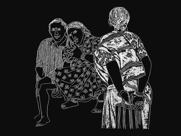 From the photogram collection: "Stories from my Heritage" This photogram explores traditional domestic Indian narratives from the point of view of an outsider - the Indian diaspora. I use the darkroom to manually document fictitious scenes from my Indian heritage, symbolically merging fact and fict...