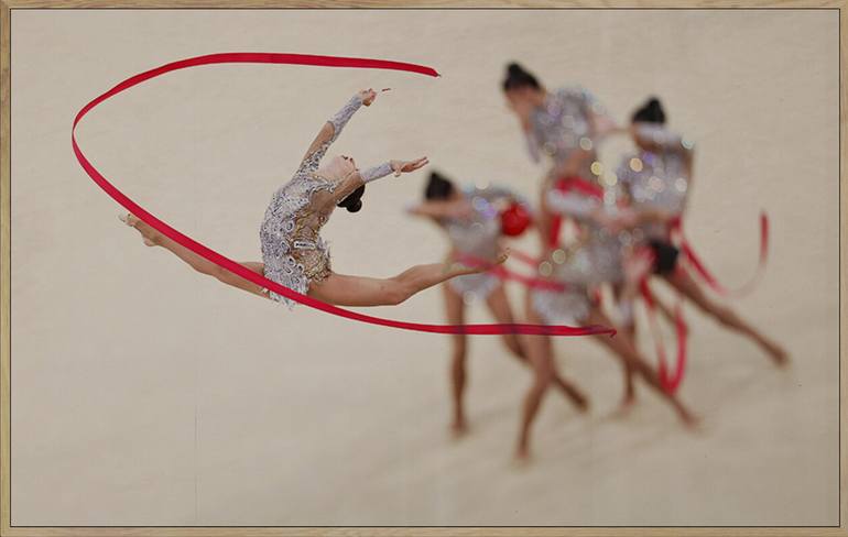 The image was photographed by Amin Mohammad Jamali from an unseen sides of gymnasts in Paris olympic games 2024 from an artistic point of view. This in a high-end artwork that was printed on Hahnemuhle Fine Art Canvas in museum quality which has a specialized certificate by gettyimages and atpimages...