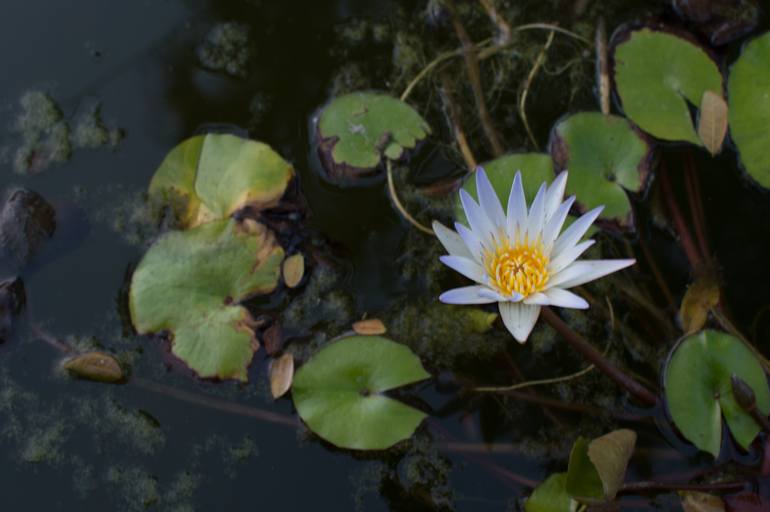 I saw this just bloomed water-lily flower in my tiny fish pond.