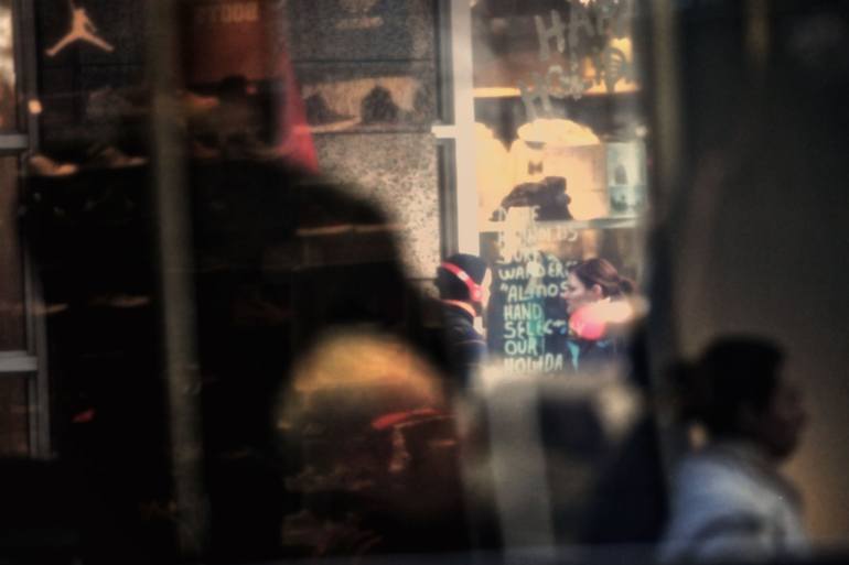 A picture take troughs a window of a bus in NY City